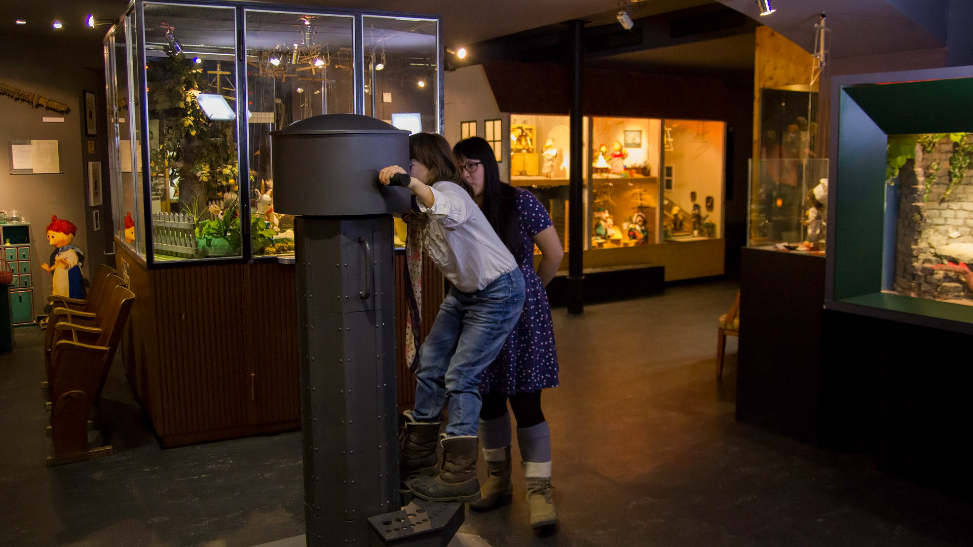 Using a periscope, designed by LAB BINÆR, the visitors of the puppet museum »die Kiste« are able to take a look behind the scenes of Augsburg’s cult theater stage. The museum is located in the Spitalgasse 15, on the second floor, above the marionette theater.