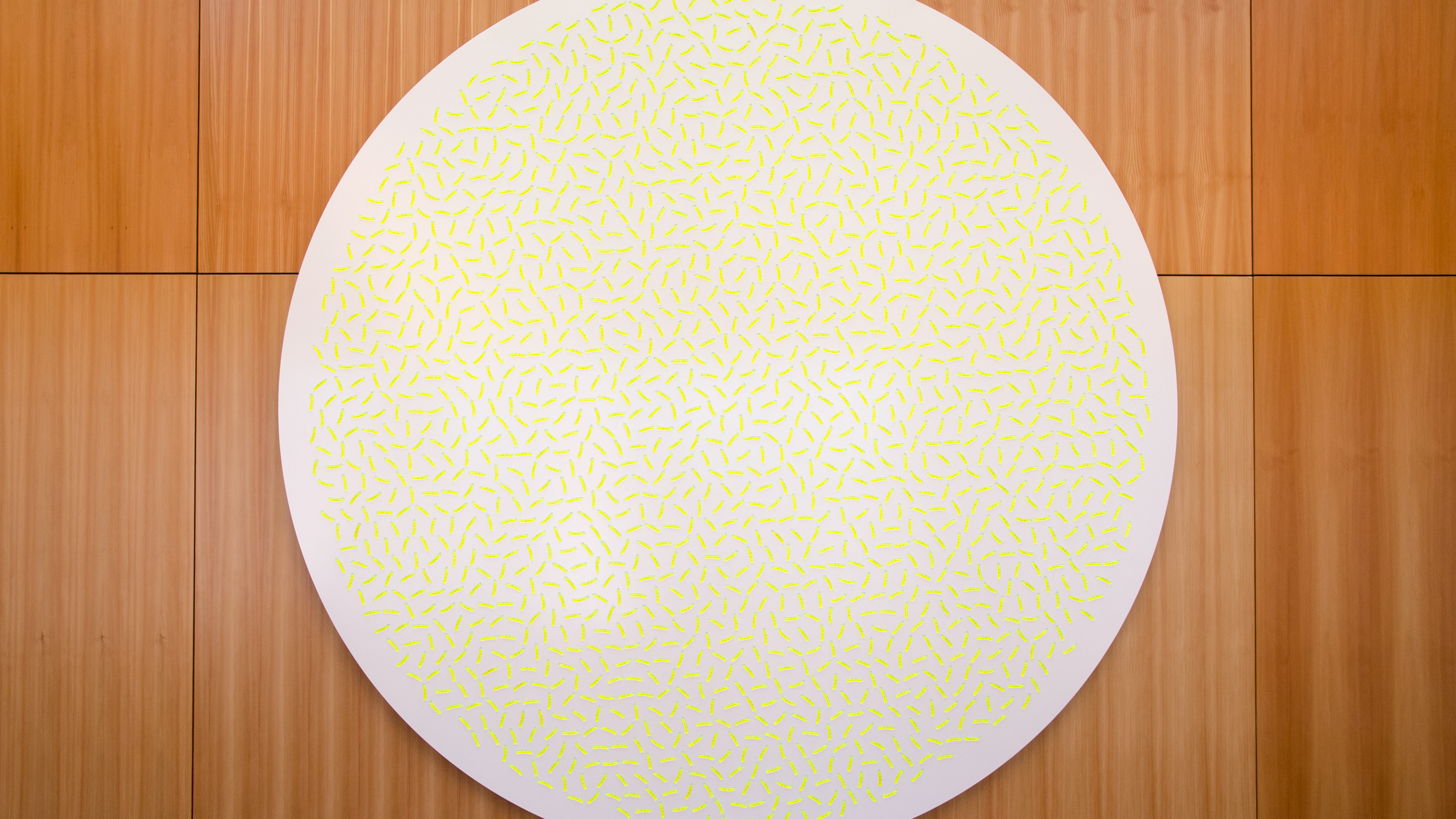 The kinetic installation »All that is right« confronts its viewer with the difficulty and complexity of contemporary jurisdiction. The piece consists of 1.750 differently angled glass levels mounted into a massive metal disc. The disk slowly rotates, and occasionally changes direction randomly.