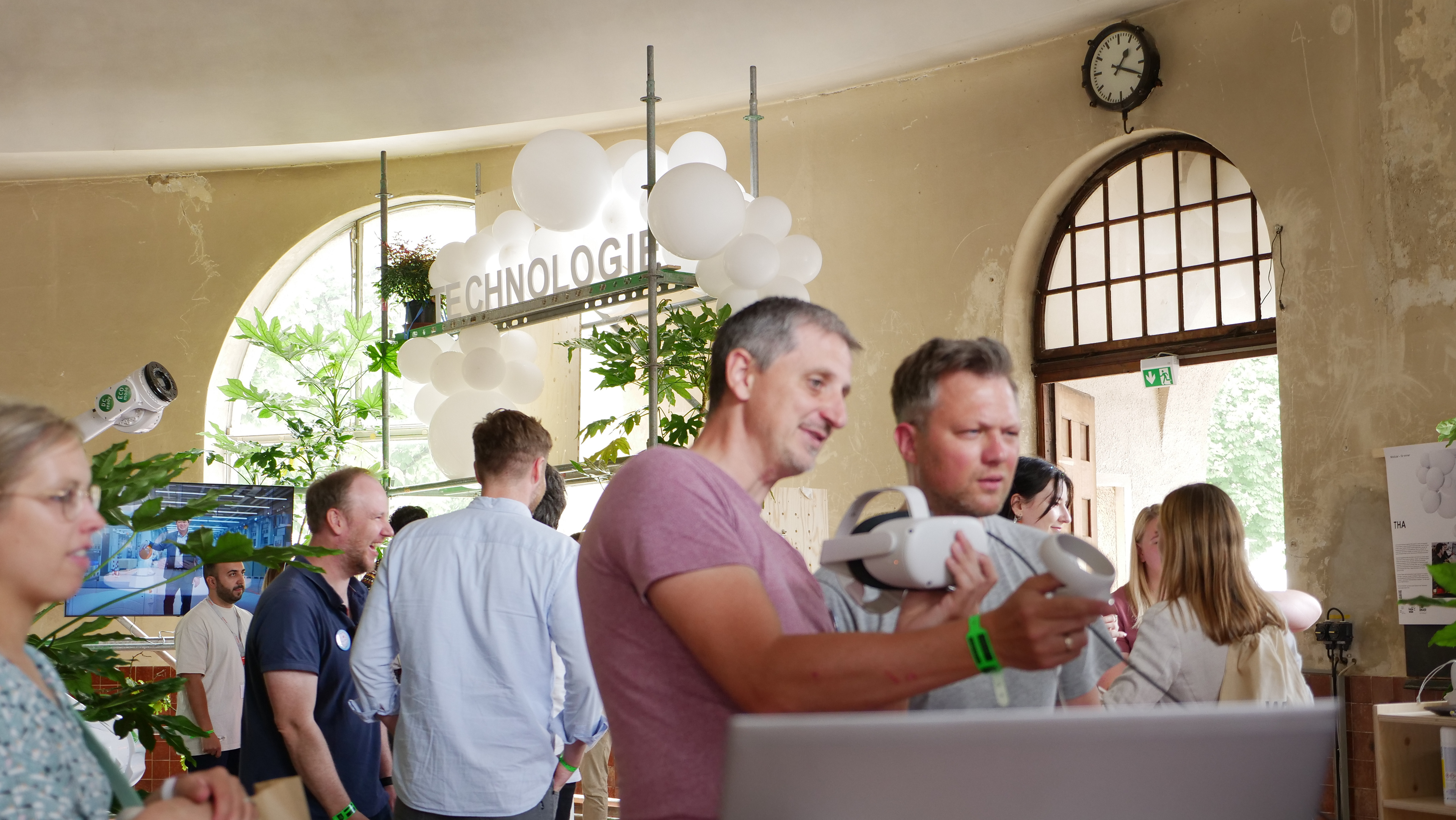 In the chill-out area, visitors could then share their thoughts on certain topics of the future at two »Prompt Vision Terminals« and have them visualized by text-image AI (Stable Diffusion). The collected visions were then handed over to the faculties of the university to inspire their future research – thus closing the circle.